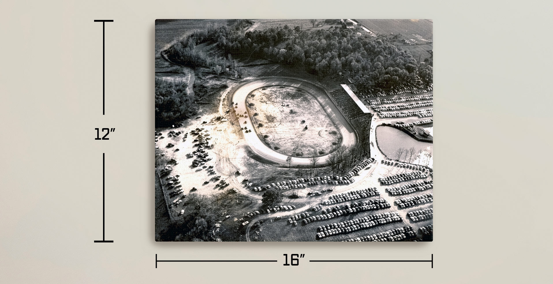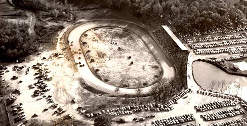 An aerial shot of the Big E from the 1956 racing season. This is one of, if not the earliest, aerial shot on record of Eldora!